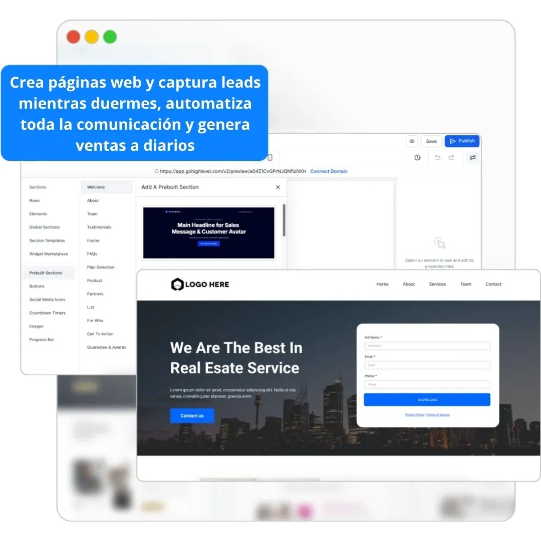 Lleva tus ventas, tu marketing y tu atención al cliente a otro nivel, todo desde un solo panel. Ahorra tiempo, vende más y disfruta crecer tu negocio sin estrés, páginas web, formularios, agendamiento de citas, email marketing, WhatsApp automático, CRM, pasarelas de pago, ¡y mucho más!